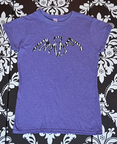 202ZL-PZ Mady Logo in Purple Zebra. Gildan Jr. Fit Sofstyle T preshrunk 65/35% poly/cotton.