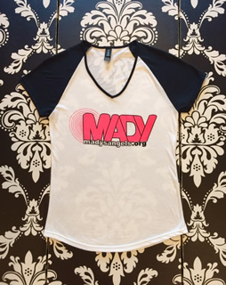 46 Ladies Anvil Raglan Tri-blend V-neck “Mady Sound” White/Black/Hot pink $20 XS-2XL
